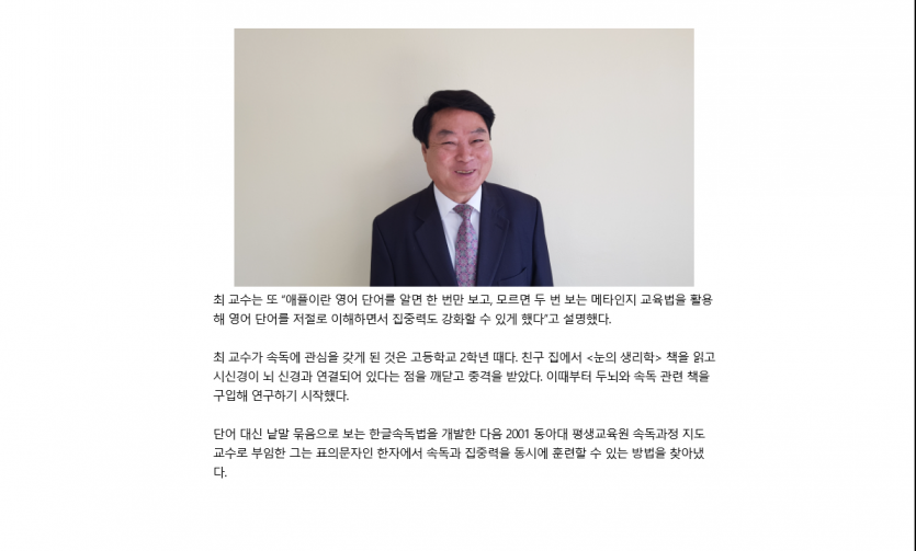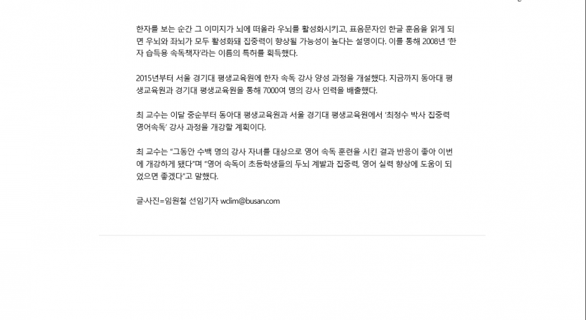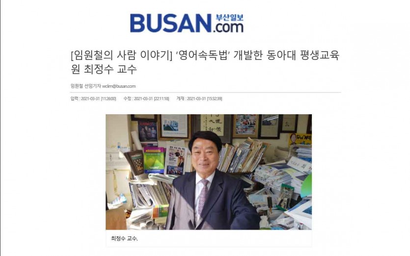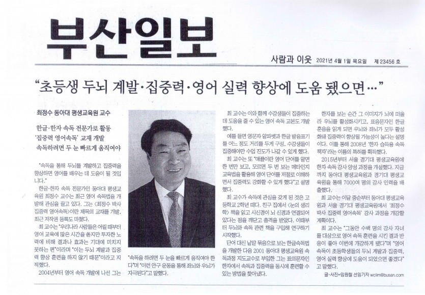 부산일보 <최정수박사집중력영어속독>의 우수성 보도 2021.4.1