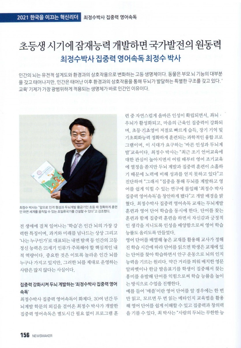 NewsMaker 2021.7월호 "초등생 시기에 잠재능력 개발하면 국가발전의 원동력 최정수박사집중력영어속독 최정수 … 페이지 정보 작성자 최고관리자 댓글 0건 조회 4,383회 작성일 21-07-01 15:36 목록 본문 . 댓글 0 댓글목록 등록된 댓글이 없습니다.